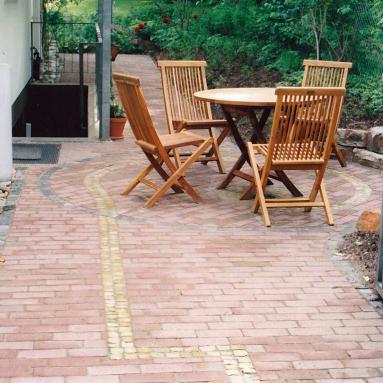 Wege: Klinker, Mosaik-Pflaster Quarzit